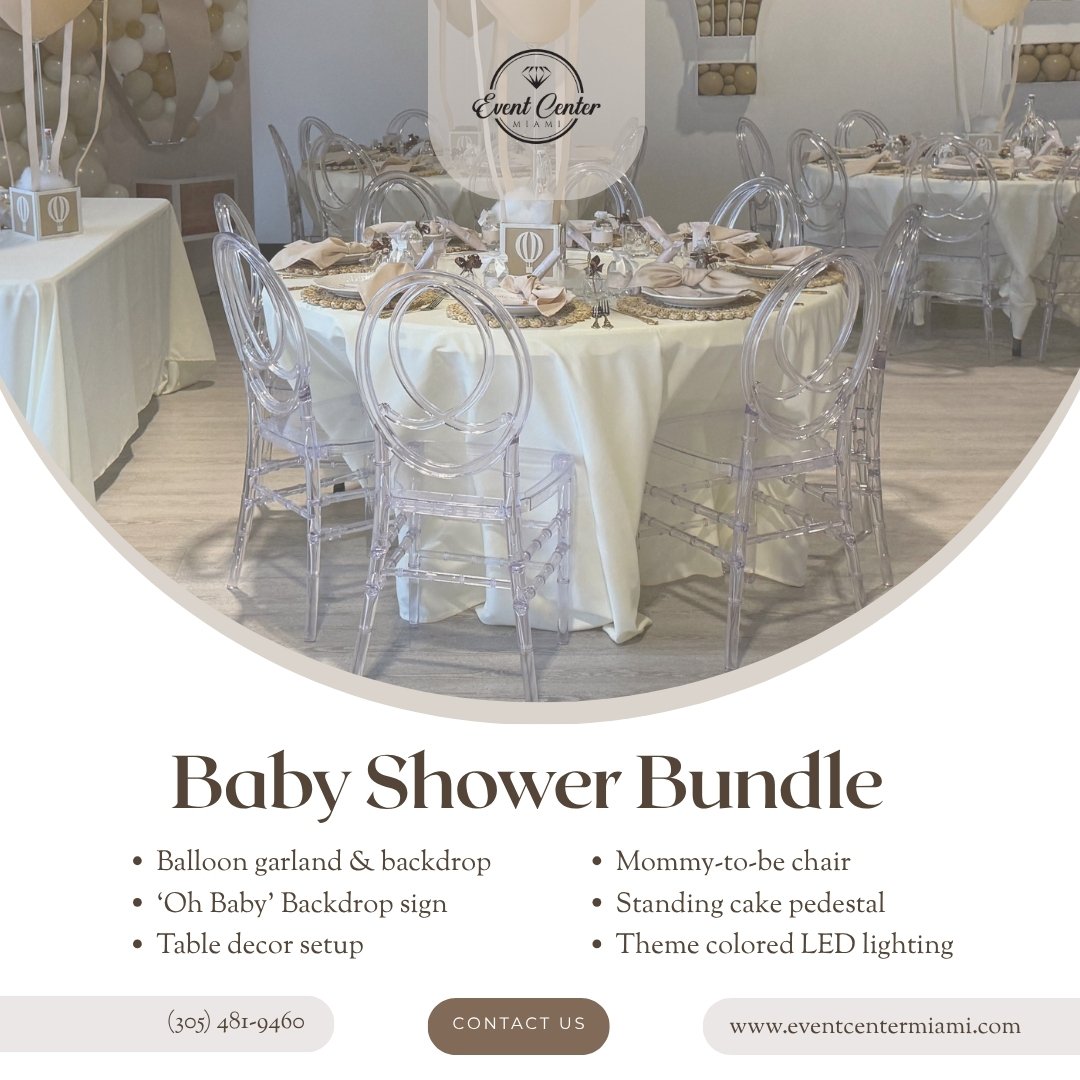 Our Baby Shower Bundle includes all the décor, backdrop, and setup essentials so you can focus on celebrating, not setting up.